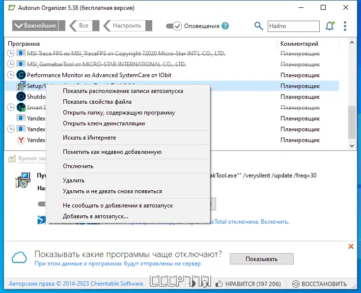 - Отображение всех программ, запускающихся при загрузке системы, с сортировкой по времени добавления