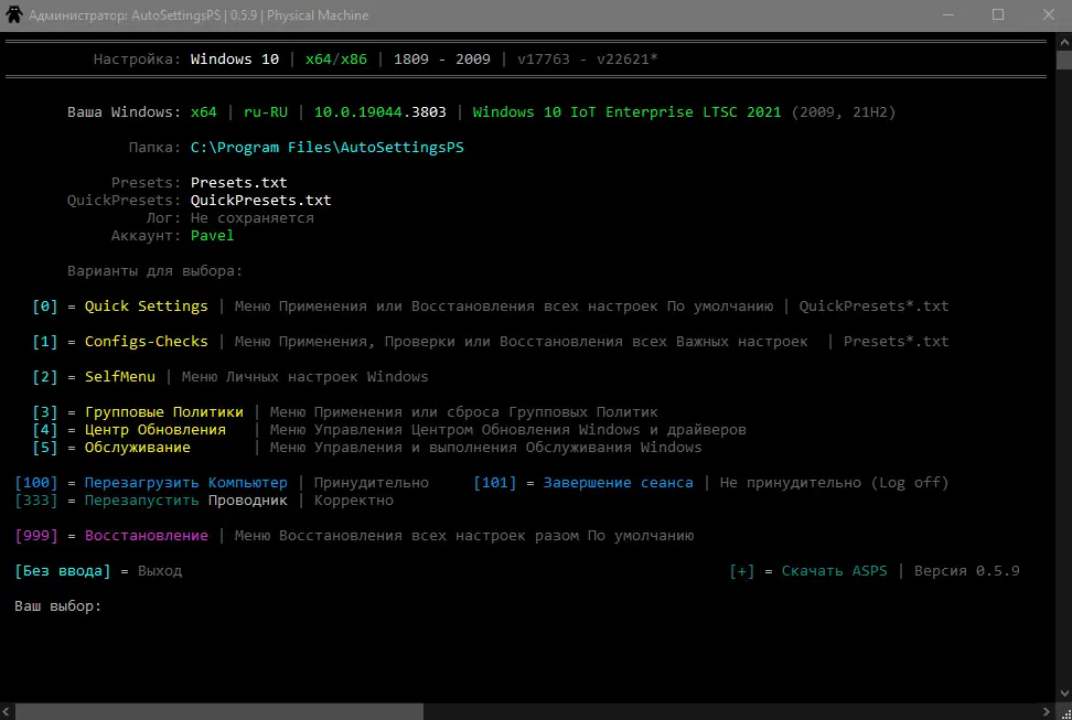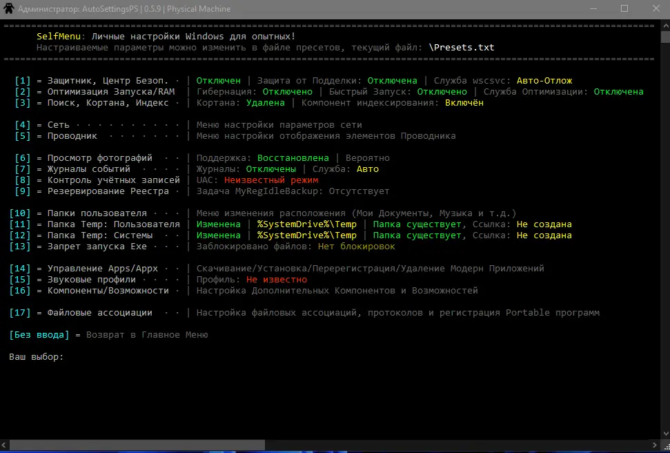AutoSettingsPS — это портативный инструмент, созданный для автоматической настройки основных параметров Windows. Основанный на наборе скриптов PowerShell, он позволяет выполнять обновления, обслуживание системы и конфигурировать сценарии под свои нужды. Программа обладает открытым исходным кодом, отображает все действия и предоставляет возможность пользователю свободно управлять настройками, освобождая ресурсы Windows и отключая сбор данных. Разработан для Windows 10, 11 и более новых версий, работает без установки, запускаясь из папки. Основная цель — оставить стандартный функционал Windows для игр и работы, исключив лишние службы и функции, при этом оставляя возможность дополнительно настроить систему под свои задачи.