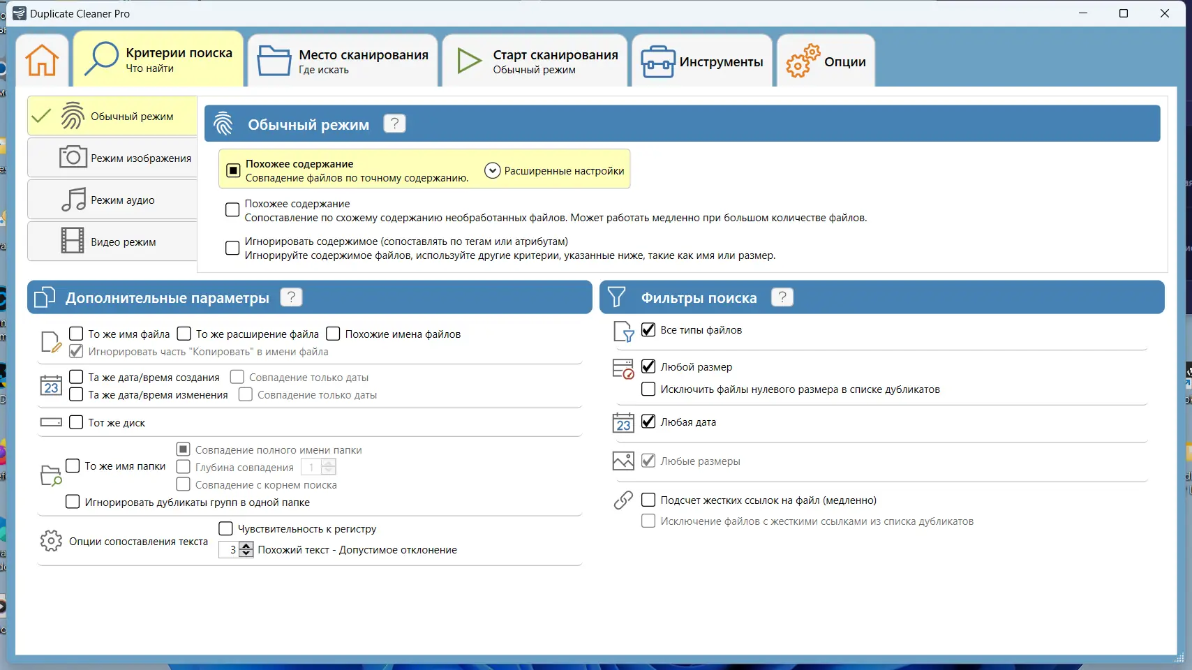 Duplicate Cleaner — профессиональный инструмент для поиска и удаления одинаковых и похожих файлов на компьютере, помогает очистить локальные и сетевые диски от дублирующихся данных.