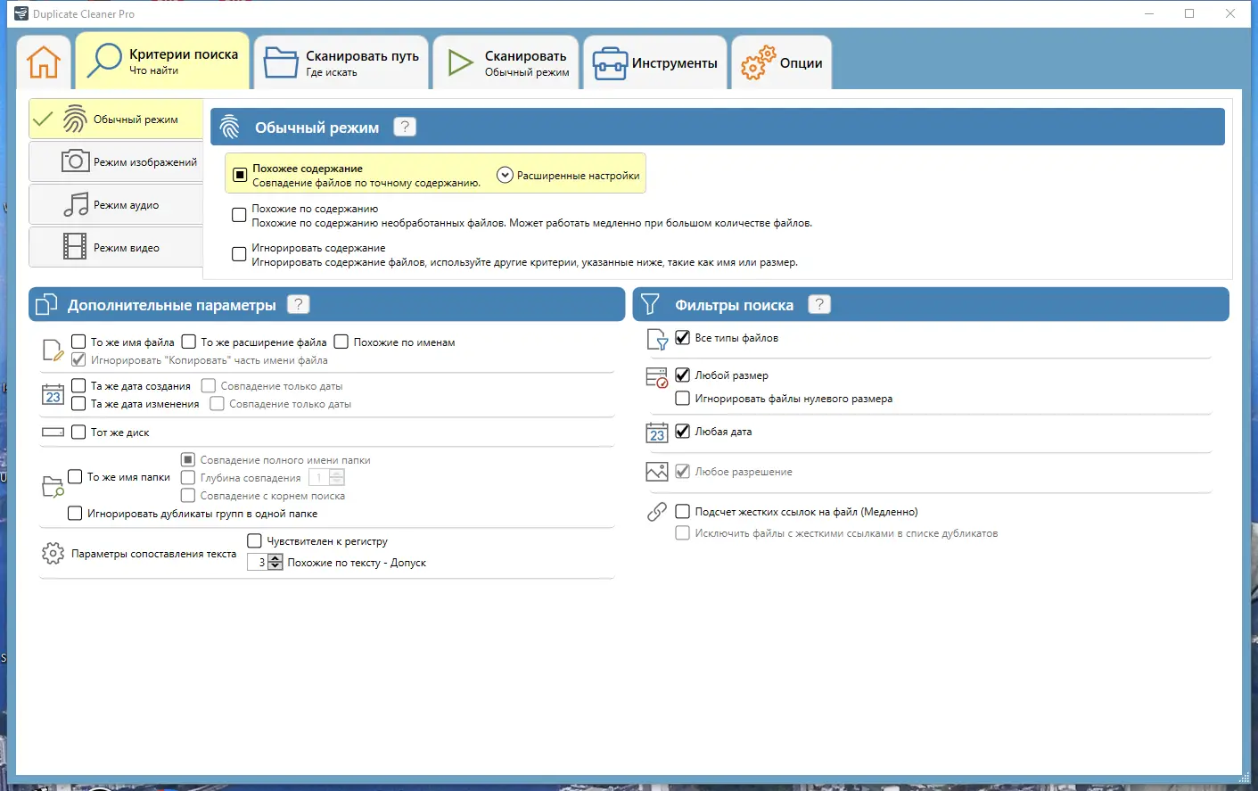 Duplicate Cleaner — профессиональный инструмент для поиска и удаления одинаковых или похожих файлов на компьютере. Этот мощный софт позволяет эффективно очищать локальные и сетевые диски от дублирующихся данных, экономя место на жестком диске и упрощая управление файлами. Благодаря интуитивно понятному интерфейсу, пользователи любого уровня смогут быстро настроить поиск по различным параметрам и выполнить очистку без лишних усилий. Программа подходит для поиска дубликатов музыки, фото, видео, документов и презентаций, а также файлов внутри ZIP-архивов и подобных контейнеров.