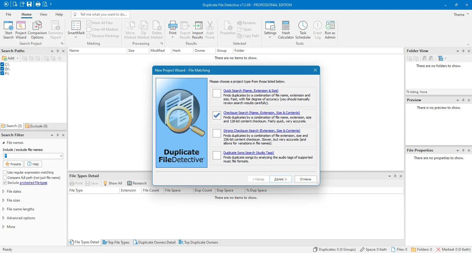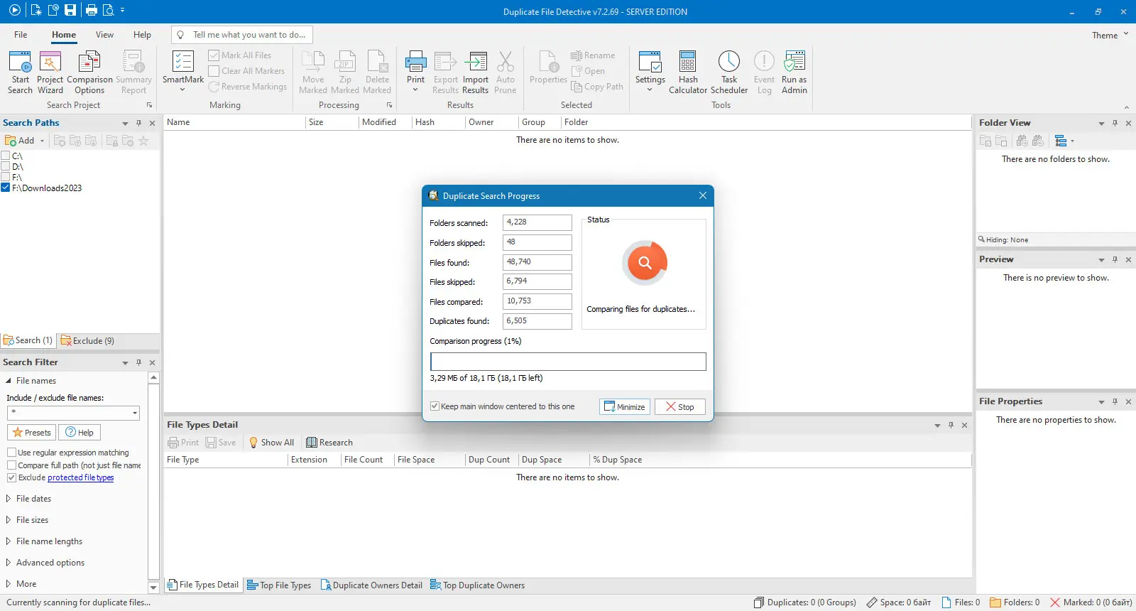 Duplicate File Detective — мощная программа для поиска и удаления дубликатов файлов на жестких дисках, съемных носителях и в сетевых папках, что позволяет оптимизировать использование пространства и ускорить операции резервного копирования.