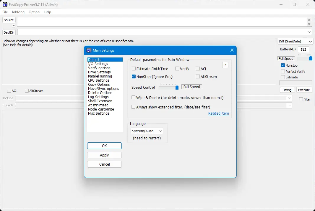 FastCopy — это высокоэффективный инструмент для копирования и удаления файлов и каталогов, который работает значительно быстрее стандартных возможностей Windows. Он поддерживает юникод (unicode) символы и способен обрабатывать пути и имена файлов, превышающие ограничение MAX_PATH (260 символов). В зависимости от размещения исходных и целевых папок (на одном или разных жестких дисках, HDD или SSD), программа автоматически выбирает оптимальный режим передачи: параллельный или последовательный. В параллельном режиме чтения и записи обрабатываются одновременно отдельными потоками, что значительно сокращает время выполнения задач. В последовательном режиме данные читаются непрерывно, до заполнения буфера, после чего происходит запись, обеспечивая максимальную скорость и стабильность процесса. Благодаря компактной, переносной версии, которая не требует установки и не оставляет следов в реестре, программу удобно использовать в любой ситуации, будь то выполнение быстрых операций или интеграция в рабочие процессы.