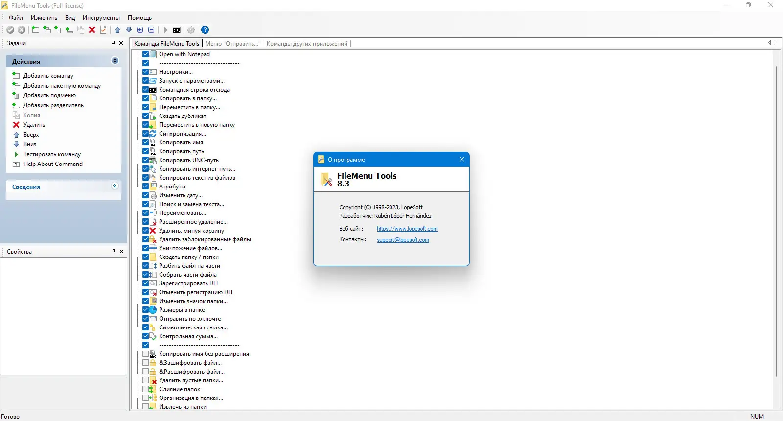Данная утилита настраивает пункты контекстного меню Windows, предоставляя пользователю возможность самостоятельно составить список необходимых команд. С помощью FileMenu Tools можно одним щелчком переименовать, скопировать, переместить или удалить файлы, запускать программы, копировать выделение в буфер обмена, открывать интернет-ссылки, запускать антивирусные сканеры и выполнять множество других действий. Программа позволяет задавать порядок размещения команд, разделять их по группам, создавать подменю и добавлять собственные команды с дополнительными параметрами. Особенностью является управление пунктами меню, созданными при установке других программ, а также быстрое редактирование меню «отправить».