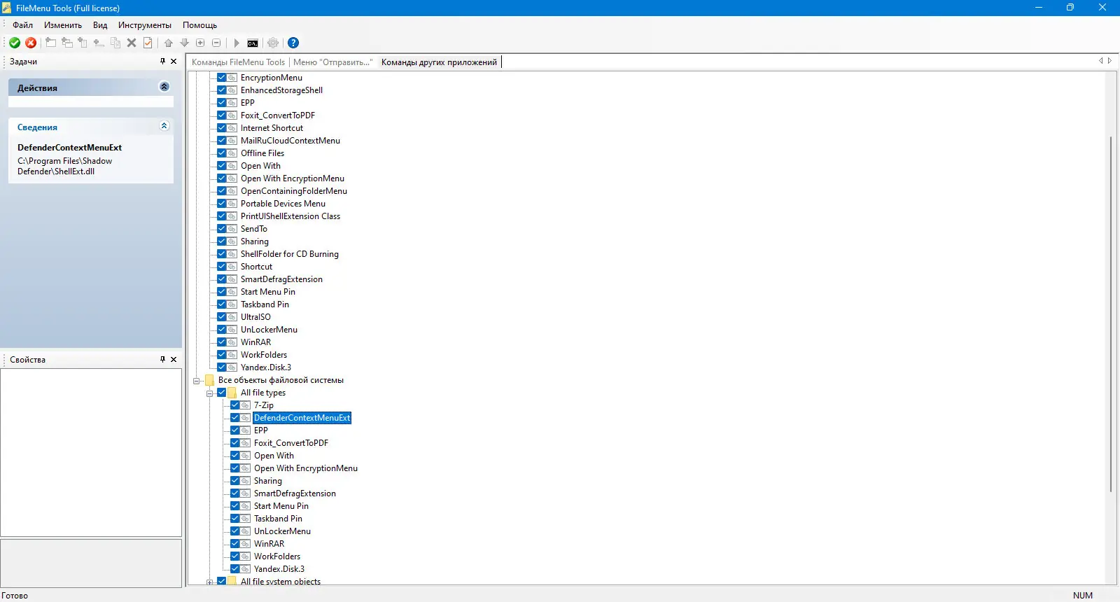 - Управление командами, которые создаются при установке других программ, и редактирование меню «отправить».