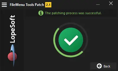 - Запустите файл Patch.exe из папки FMTP21 и нажмите кнопку Patch для автоматической интеграции программы в систему.