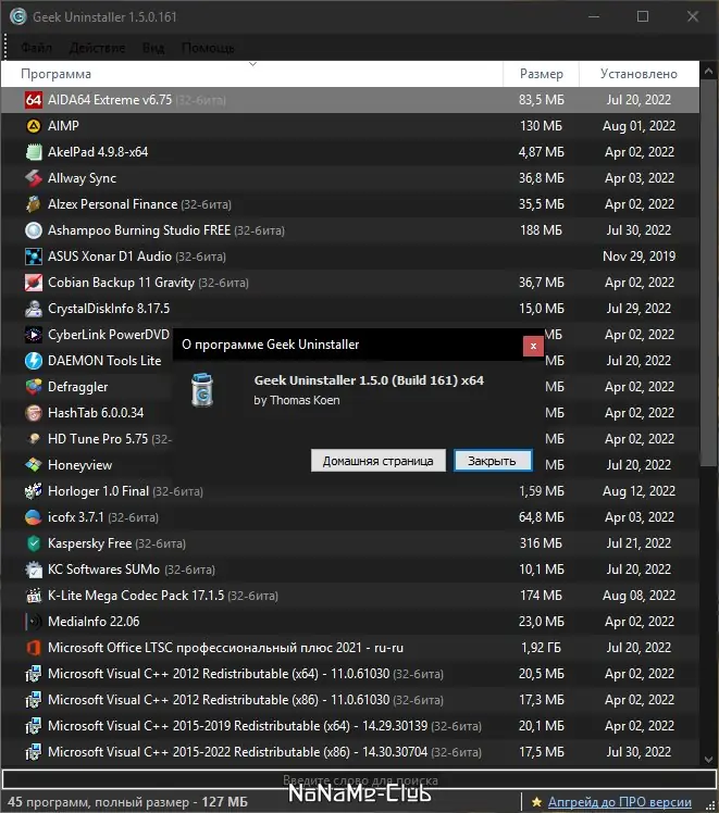 Geek Uninstaller — компактное и надежное решение для деинсталляции программ, не требующее установки и идеально подходящее для быстрого очистки системы от ненужных приложений.
