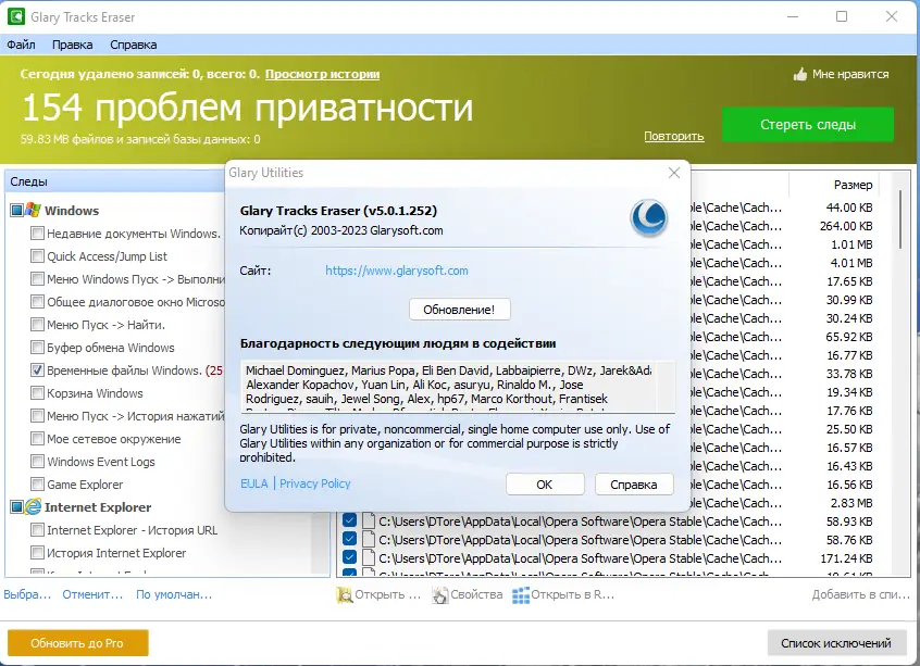 Glary Tracks Eraser — мощное приложение для удаления следов использования Windows и браузеров, обеспечивающее конфиденциальность и безопасность данных пользователя.