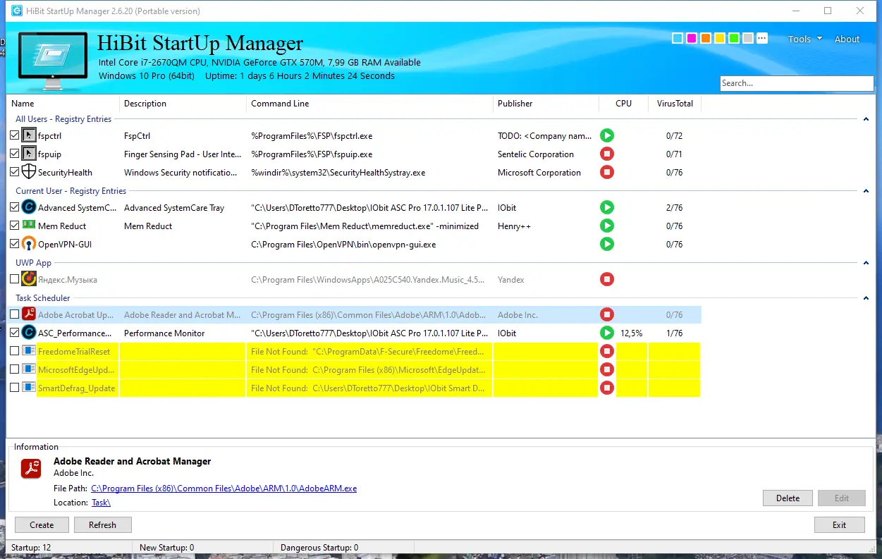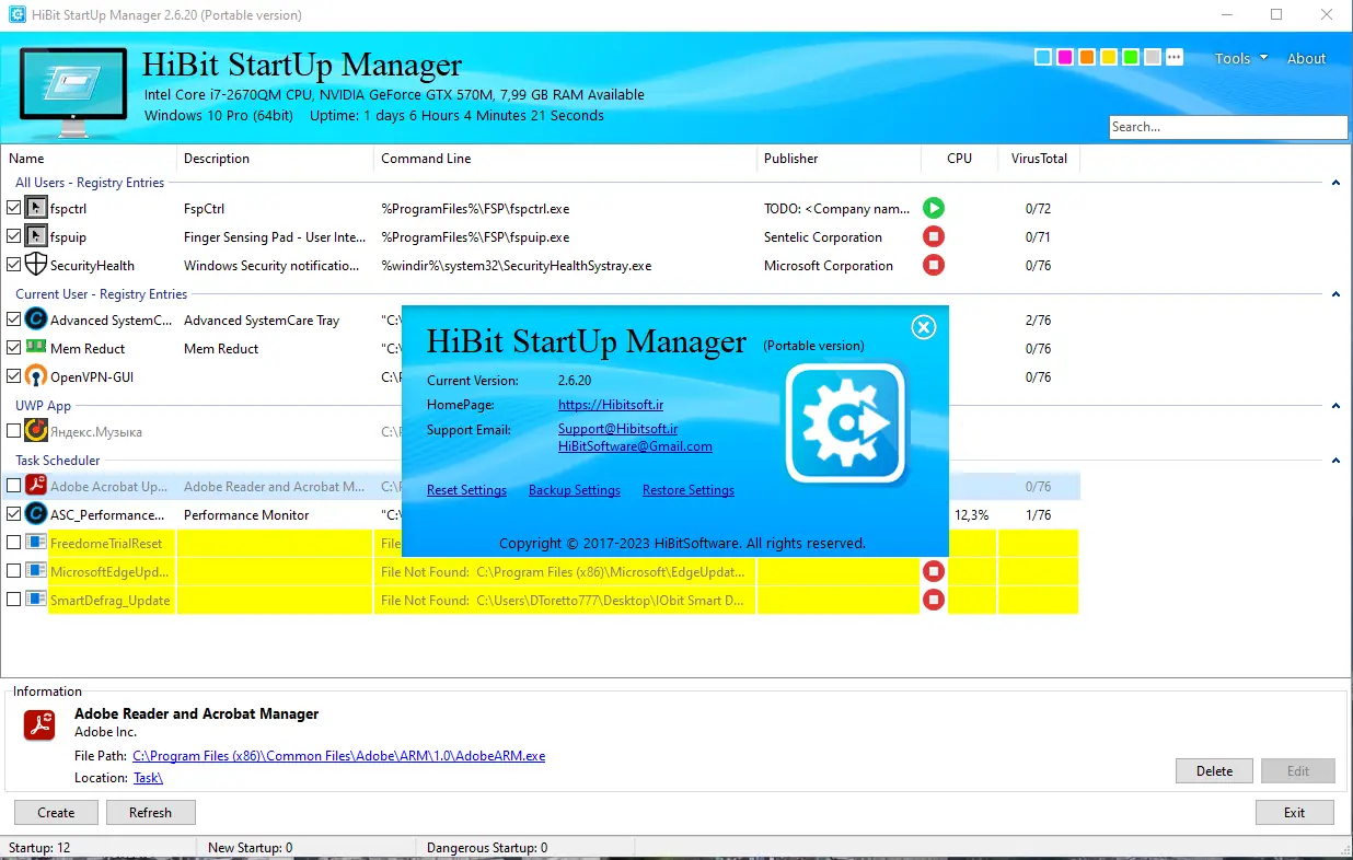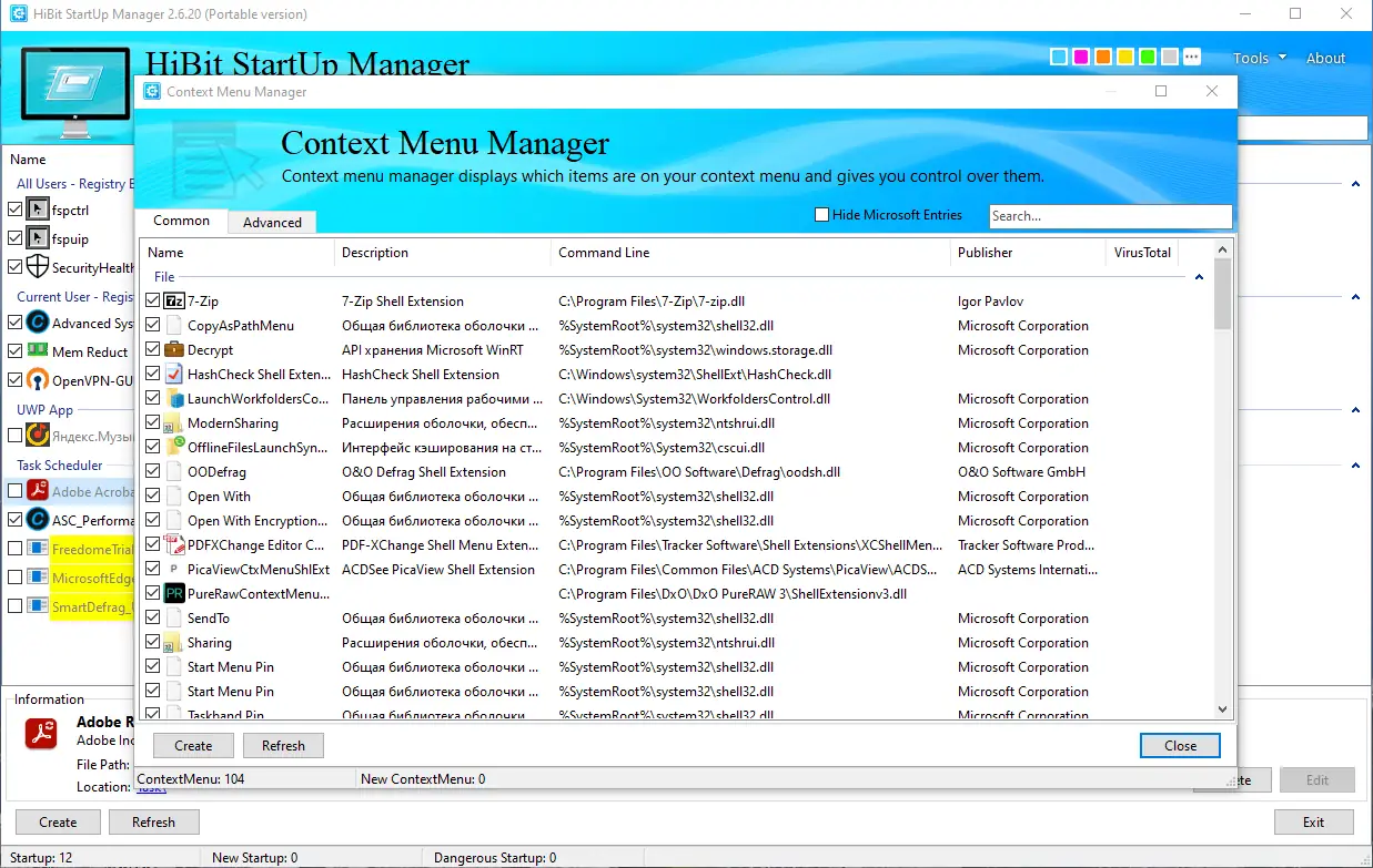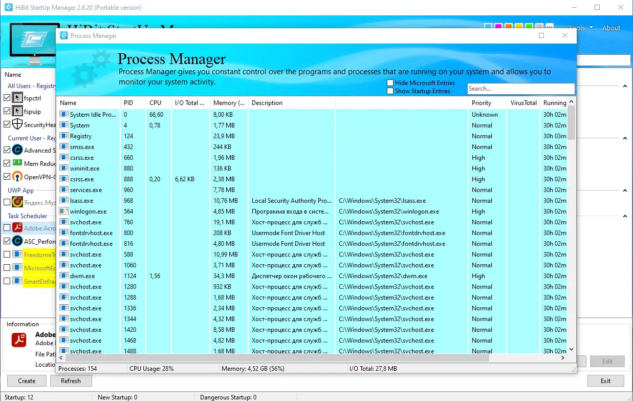 HiBit Startup Manager — это мощная программа для управления автозагрузкой Windows, позволяющая контролировать все приложения, стартующие вместе с системой. Инструмент предназначен для повышения производительности и безопасности компьютера за счет эффективной оптимизации процессов загрузки.
