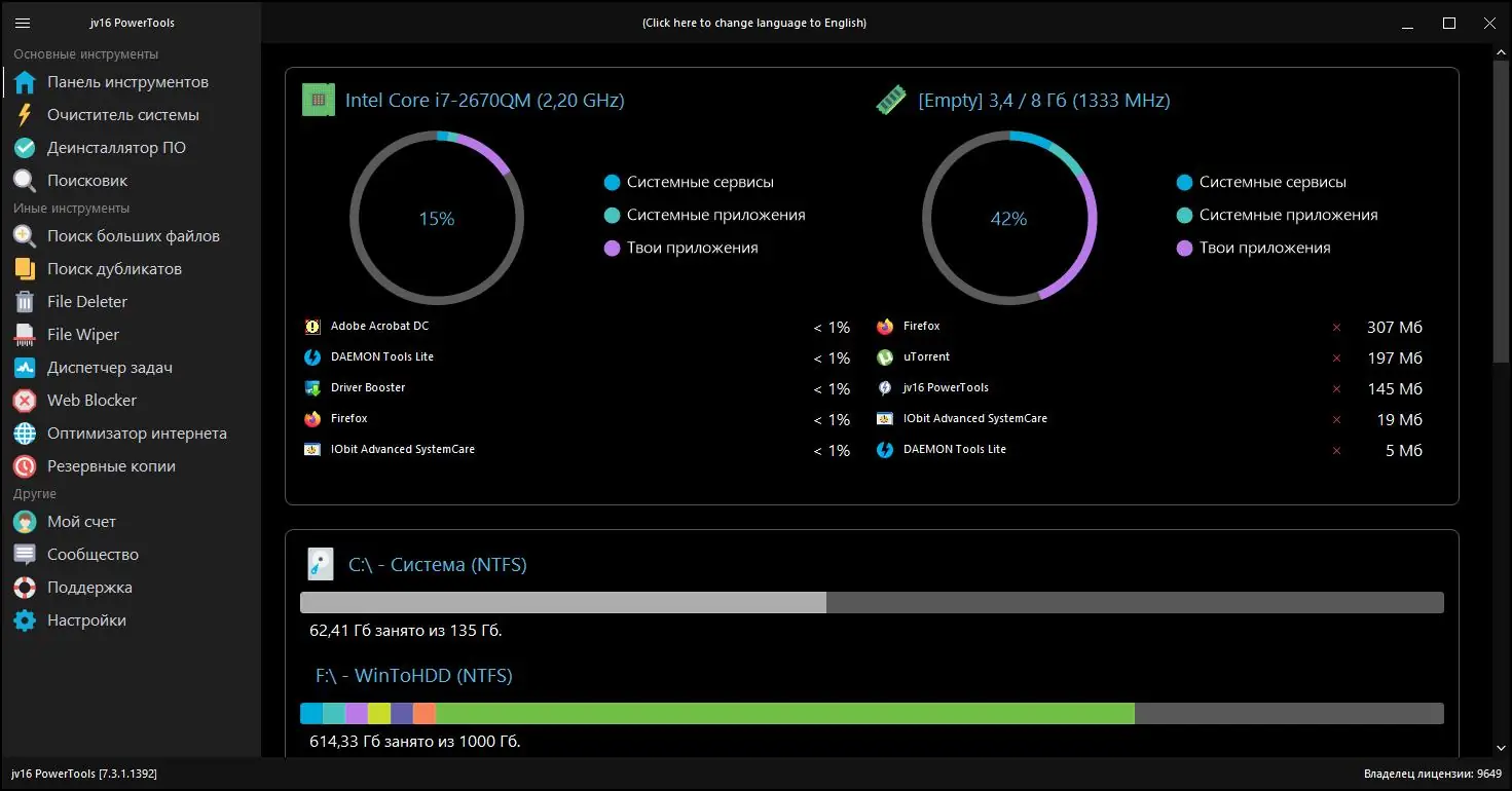 Программа отличается высокой универсальностью и эффективностью в обслуживании системы, объединяя множество инструментов в одном интерфейсе для удобства работы.