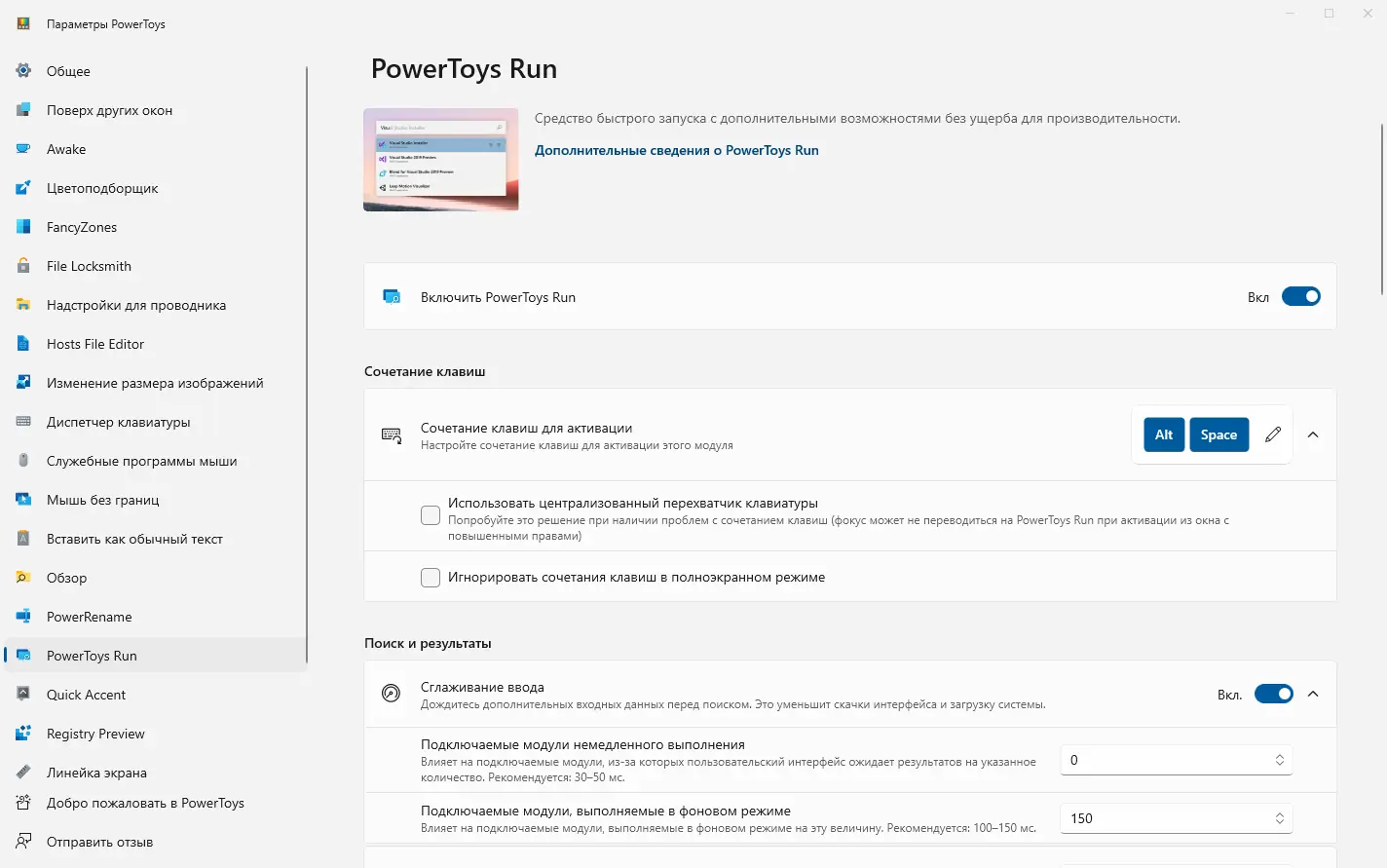 - Панель PowerToys – лаунчер приложений с поиском по имени для быстрого запуска файлов или программ.