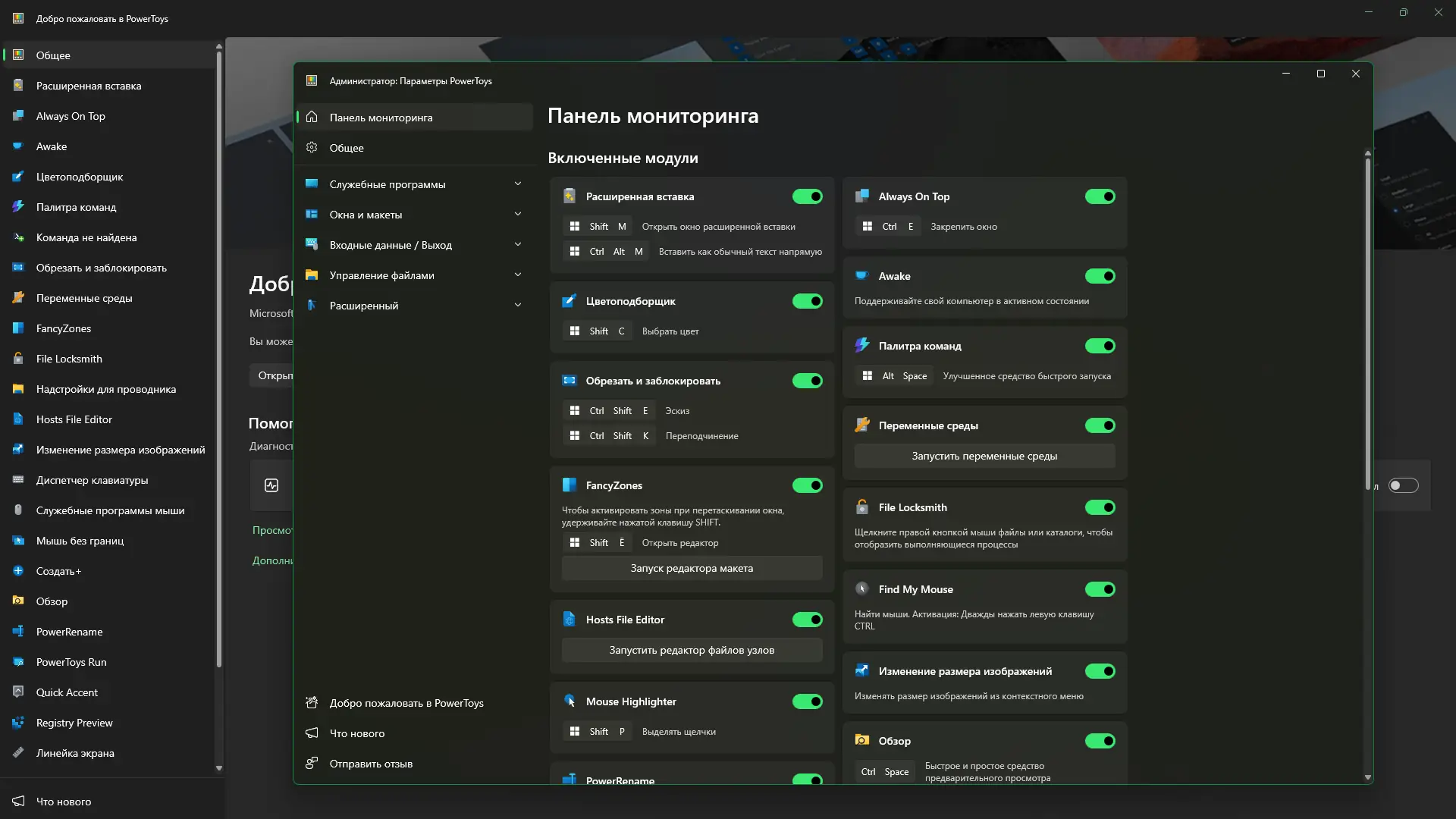 - Диспетчер клавиатуры (Keyboard Manager) — переназначение клавиш и сочетаний клавиш для повышения эффективности работы.