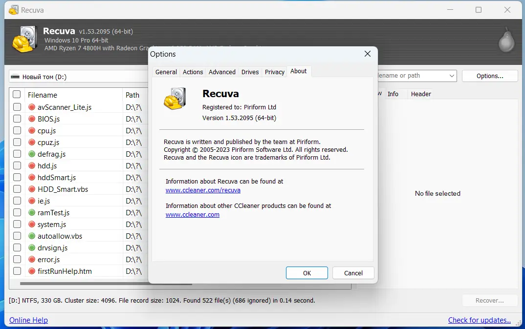 - Эффективное восстановление утерянных файлов любой сложности и объема при помощи Recuva.