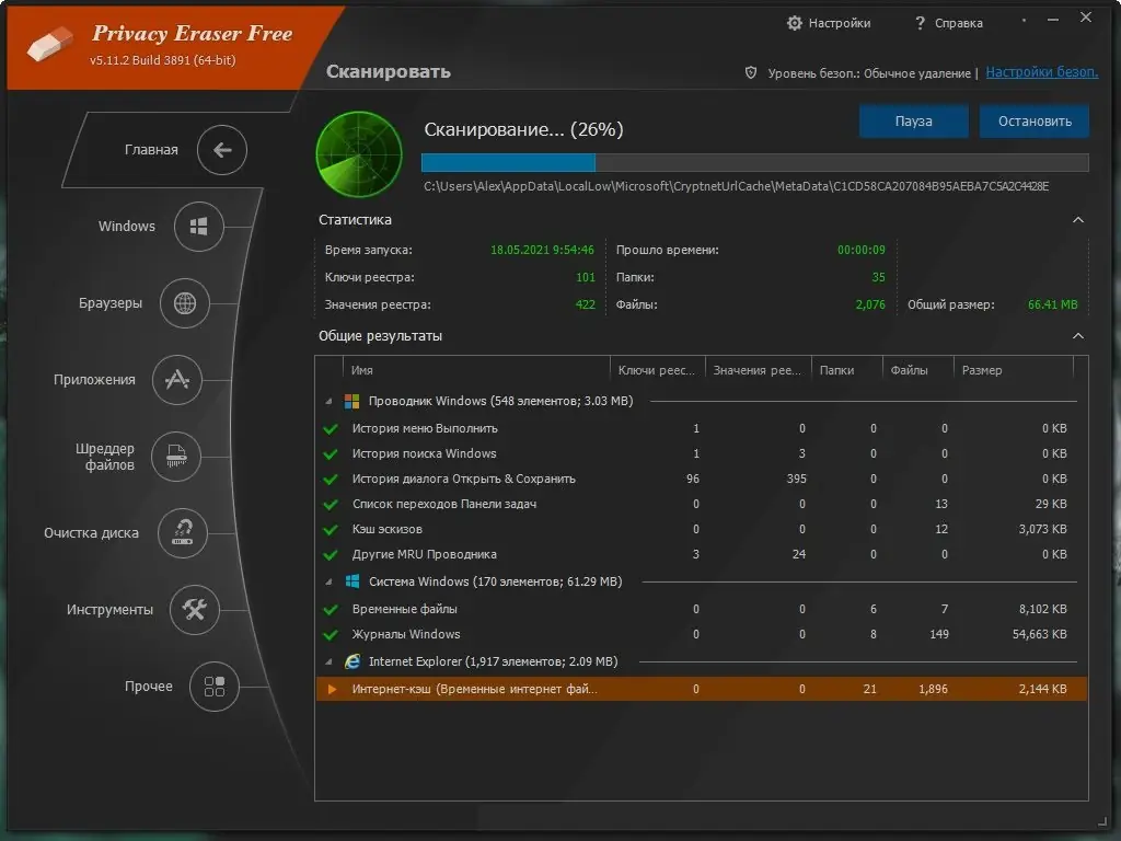Privacy Eraser — мощный инструмент для безопасной очистки системы от ненужных файлов и конфиденциальной информации, который позволяет повысить безопасность и скорость работы ПК.