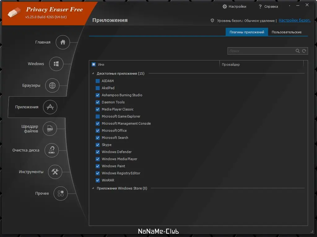 - Расширенная поддержка плагинов для удаления следов популярных программ
