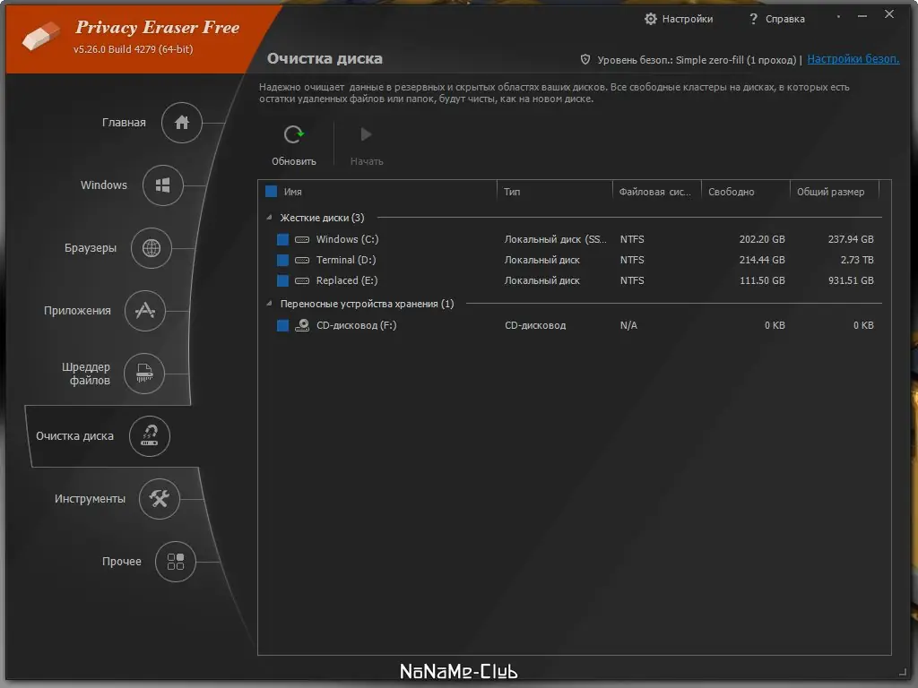 - Отсутствие динамических режимов затирания данных (например, уровни безопасности по стандартам US DoD или Gutmann) в бесплатной версии.