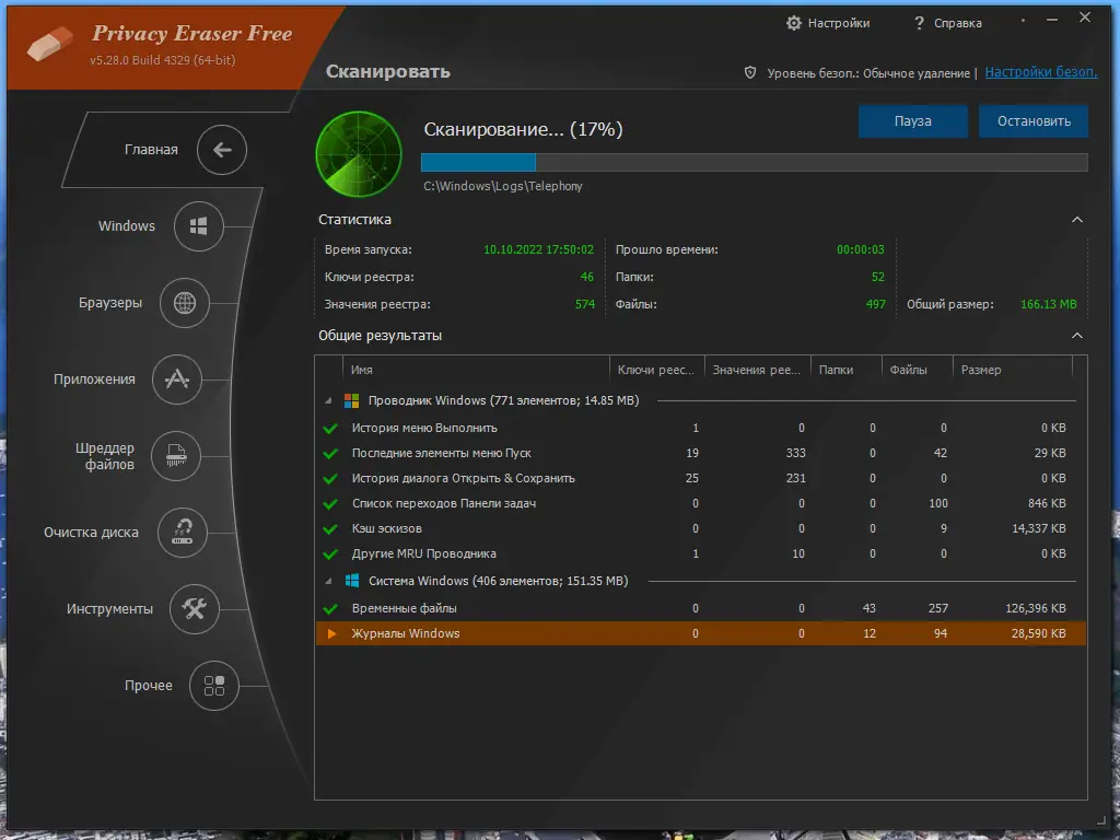 Privacy Eraser — это мощное решение для удаления истории браузеров, файлов, системных журналов и других следов пользователей. Поддерживая основные параметры системы Windows, а также популярные браузеры и приложения, программа избавляет от ненужных файлов, ускоряет работу интернета и повышает стабильность системы. Одним щелчком мыши Privacy Eraser стирает кэш, cookies, историю посещений, автозаполнения, пароли, файлы index.dat, а также системные журналы и временные файлы, что делает использование ПК максимально приватным и безопасным.