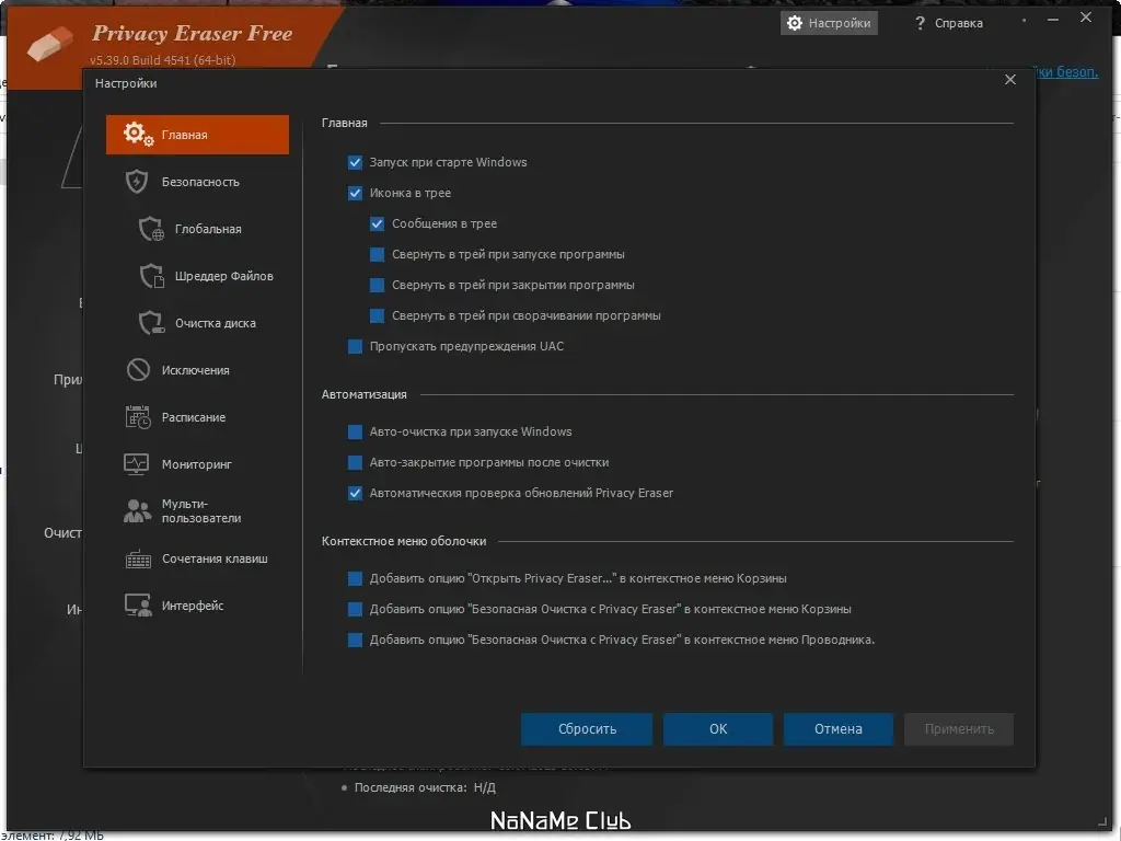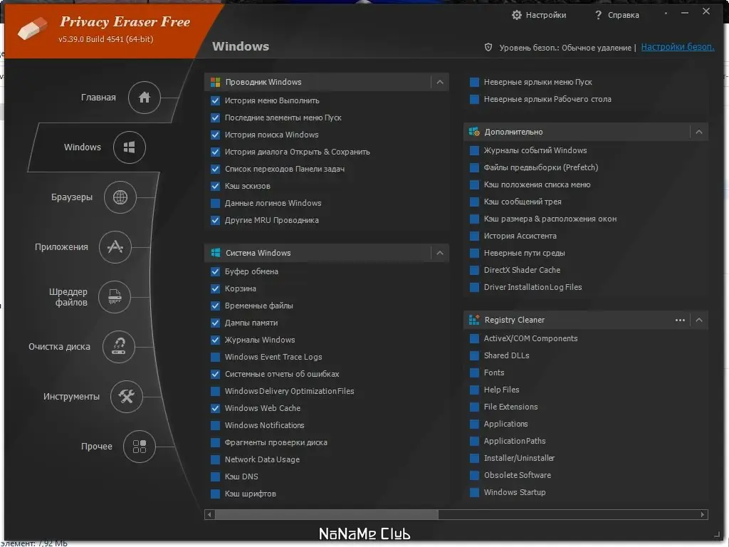 - Удаление следов от популярных программ, таких как Microsoft Office, WinRAR, VLC, Google Toolbar и др.