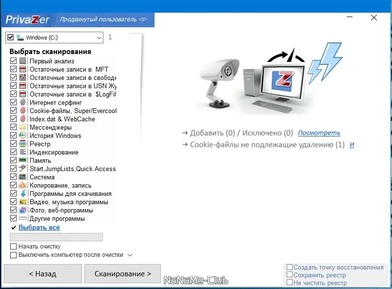 - Обнаружение и удаление следов в реестре, истории браузеров и cookies