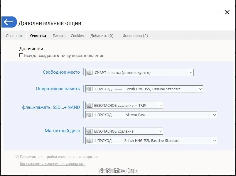 - Очистка таблиц MFT и FAT, а также страниц swap и файлов hibernation