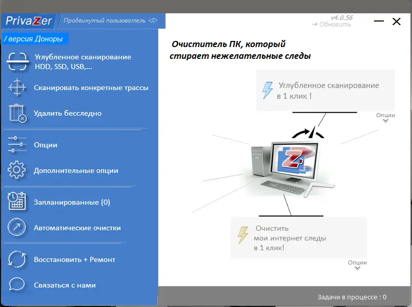 PrivaZer — утилита для эффективной очистки компьютера от следов конфиденциальной информации, обеспечивающая защиту личных данных и улучшение производительности системы.