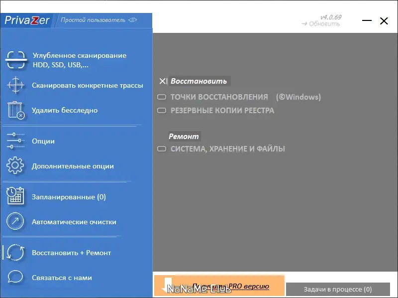 - Очистка и восстановление реестра, системы и создание резервных копий
