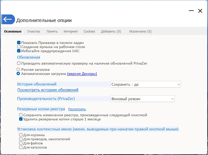 - Очистка истории, cookies, Prefetch и других следов браузеров и системы