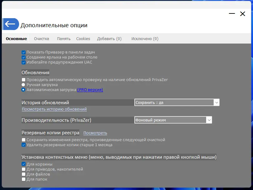 - Детальное сканирование и удаление следов реестра, cookies, истории посещений и других остатков