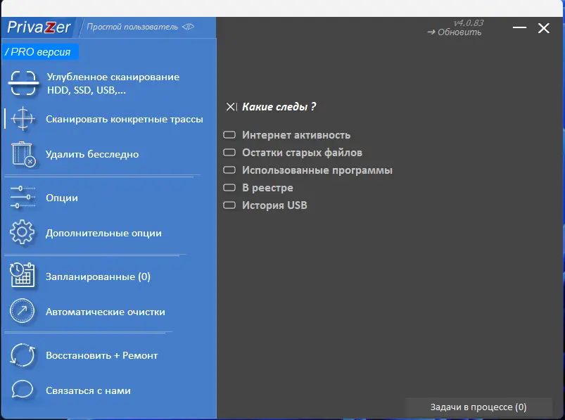 - Глубокая очистка следов активности, включая истории браузеров, cookies и файлы времен