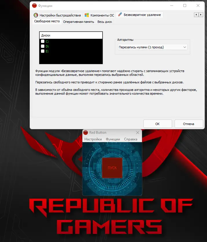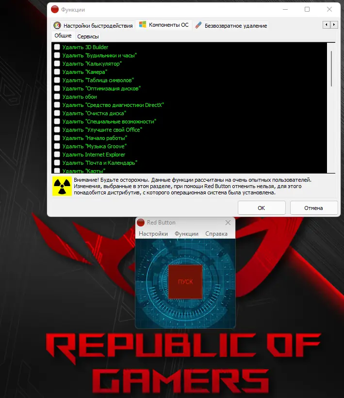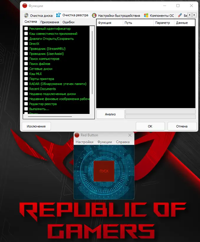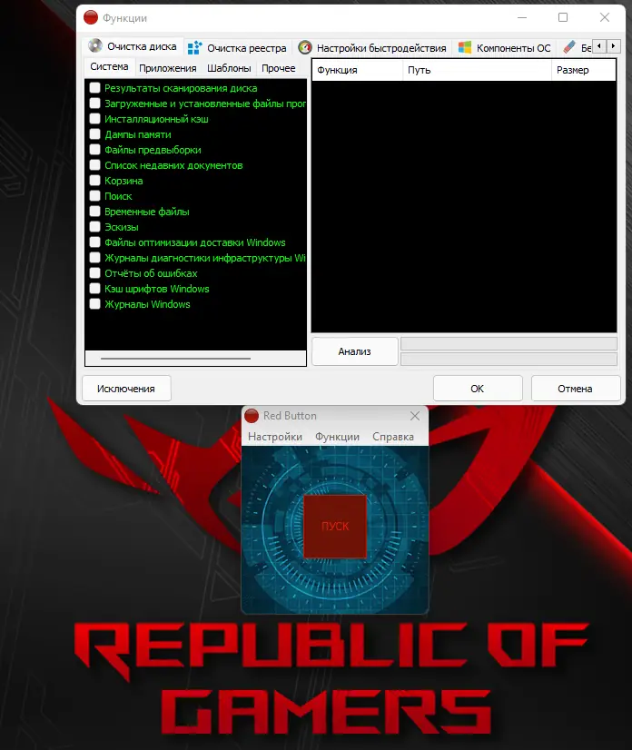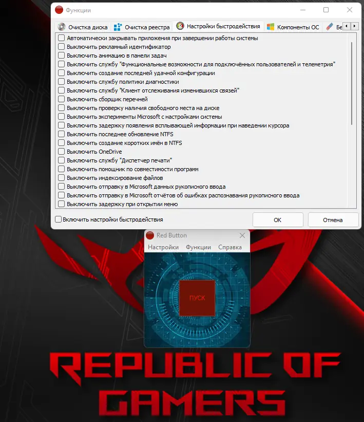 Red Button — это мощная утилита, предназначенная для оптимизации и очистки всех актуальных клиентских версий операционной системы Windows. Она позволяет отключать и удалять ненужные компоненты системы, изменять скрытые настройки, повышать скорость загрузки, работы и выключения компьютера. Также программа исправляет ошибки в реестре, удаляет «мусорные» файлы, освобождает место на диске и защищает приватность пользователя, убирая временные файлы, cookies, историю посещений, кэш и другие следы работы системы и приложений. Ее использование значительно повышает безопасность, удобство и производительность системы, улучшает работу игр и продлевает время автономной работы мобильных устройств. Благодаря поддержке всех актуальных версий Windows с 7 по 11, программа универсальна и подходит для любой современной конфигурации. Высокая оценка специалистами подтверждается многочисленными наградами и положительными отзывами пользователей.