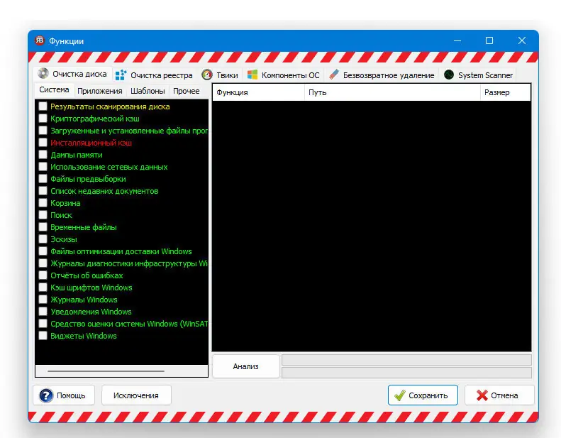 - Множество функций — более 100 различных инструментов для оптимизации и очистки