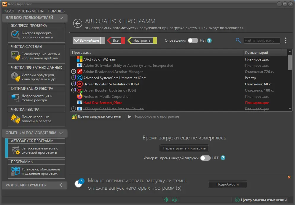 - Контроль автозапуска приложений для ускорения загрузки Windows.