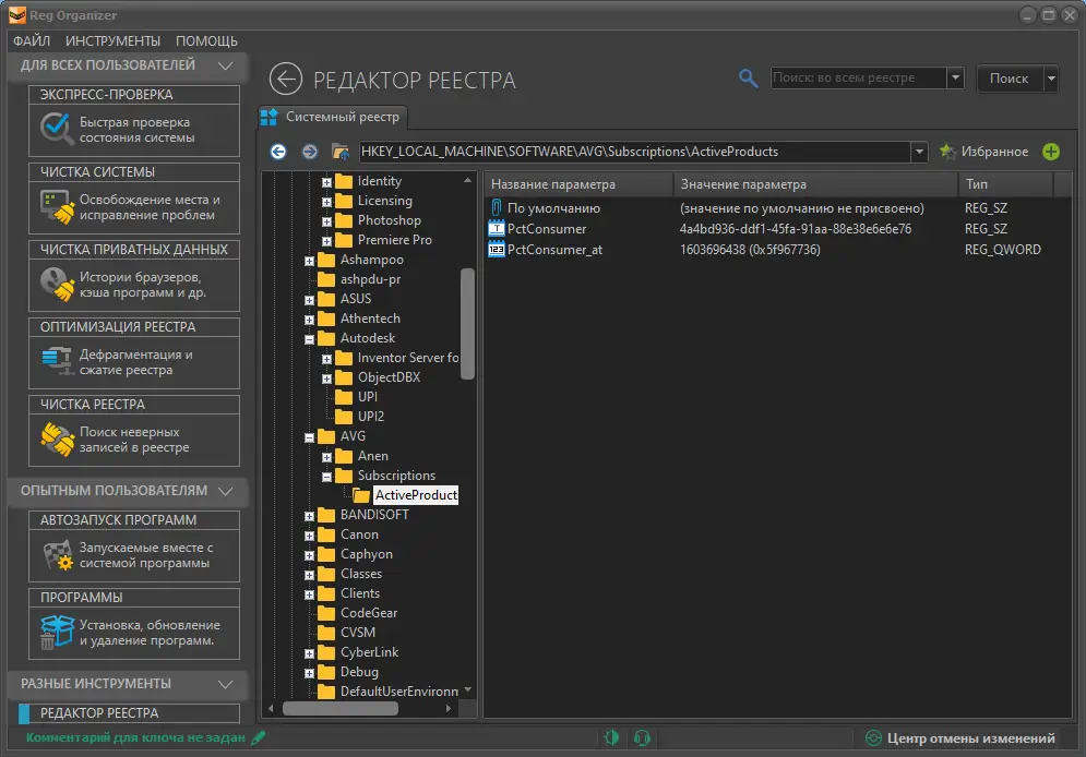 - Расширенный редактор реестра с возможностью экспорта, импорта и редактирования ключей и данных.