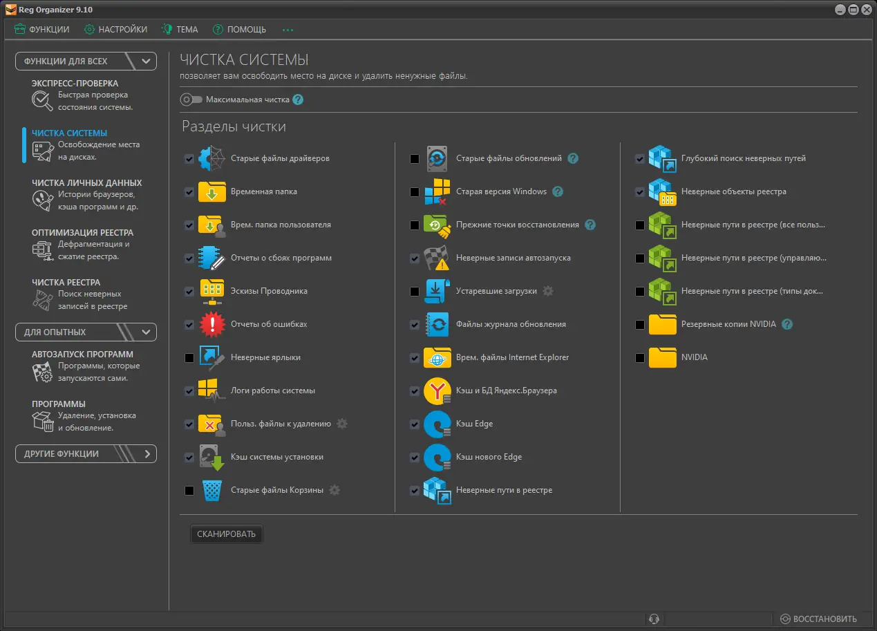 - Автоматическая очистка Windows от ненужных файлов и обновлений для освобождения места и увеличения производительности.