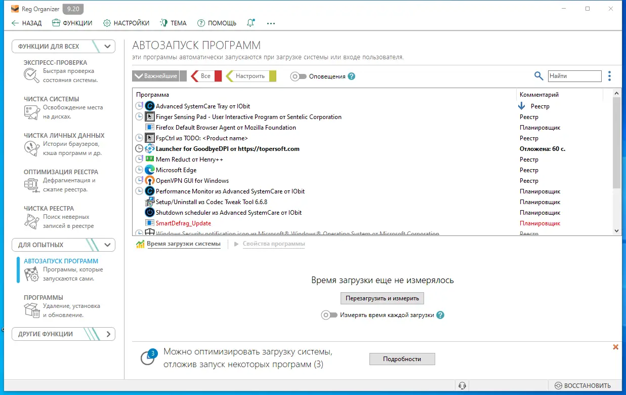 - Расширенный менеджер автозагрузки для контроля запускаемых приложений и ускорения загрузки системы.