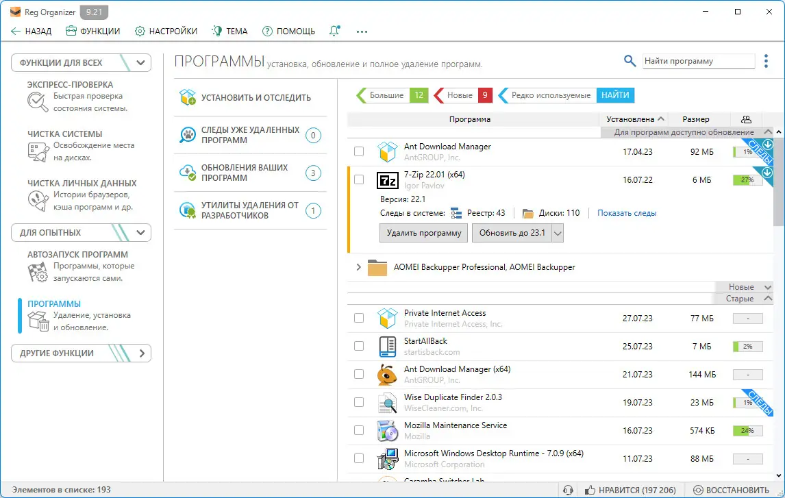 Reg Organizer — это мощный инструмент для комплексного обслуживания операционной системы Windows. Он позволяет проводить чистку реестра, его сжатие и дефрагментацию для повышения производительности системы. Встроенный расширенный редактор дает возможность выполнять операции с реестром, экспортировать и импортировать ключи, а также управлять настройками. Благодаря функции предварительного просмотра reg-файлов, пользователь может безопасно импортировать данные, видя содержимое перед внесением изменений. Также программа обеспечивает полное удаление программ с «хвостами» — благодаря технологии Full Uninstall™, которая помогает избавиться от следов удалённых приложений, предотвращая захламление системы.