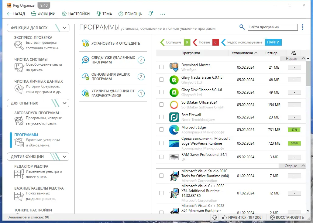 - Удаление программ с поиском остатков в реестре и файлах для предотвращения захламления системы.