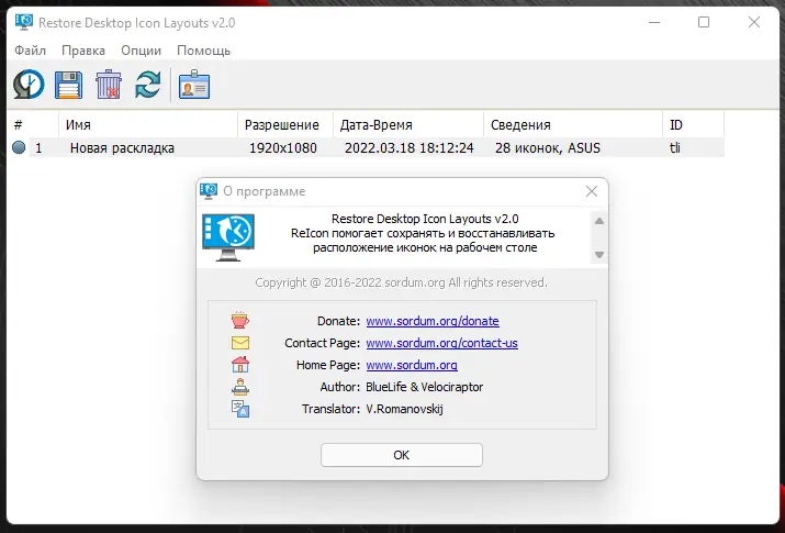 Программа для сохранения и восстановления макета значков рабочего стола, позволяет быстро возвращать порядок после изменений разрешения экрана или настроек.