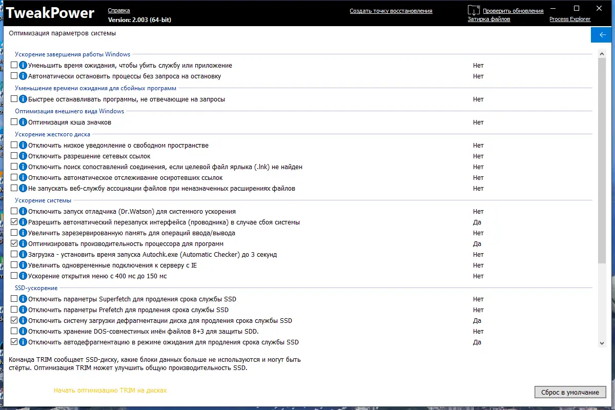 Благодаря богатому набору функций, TweakPower позволяет значительно повысить производительность и безопасность системы Windows. Легко управляется пользователями с разным уровнем знаний, а также обладает хорошими отзывами о программе.