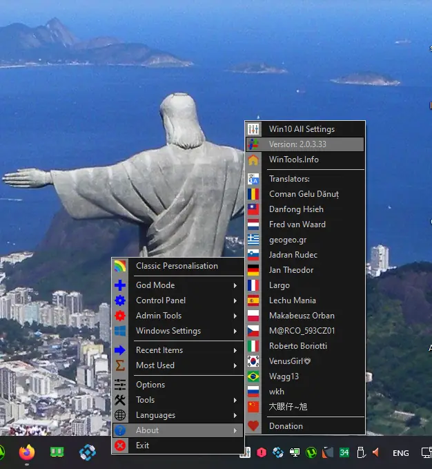 Win10 All Settings — бесплатная портативная программа, предоставляющая удобный доступ ко множеству системных настроек Windows 10, а также инструментам администрирования и персонализации. Она значительно упрощает работу с системными параметрами, объединяя их в едином интерфейсе.