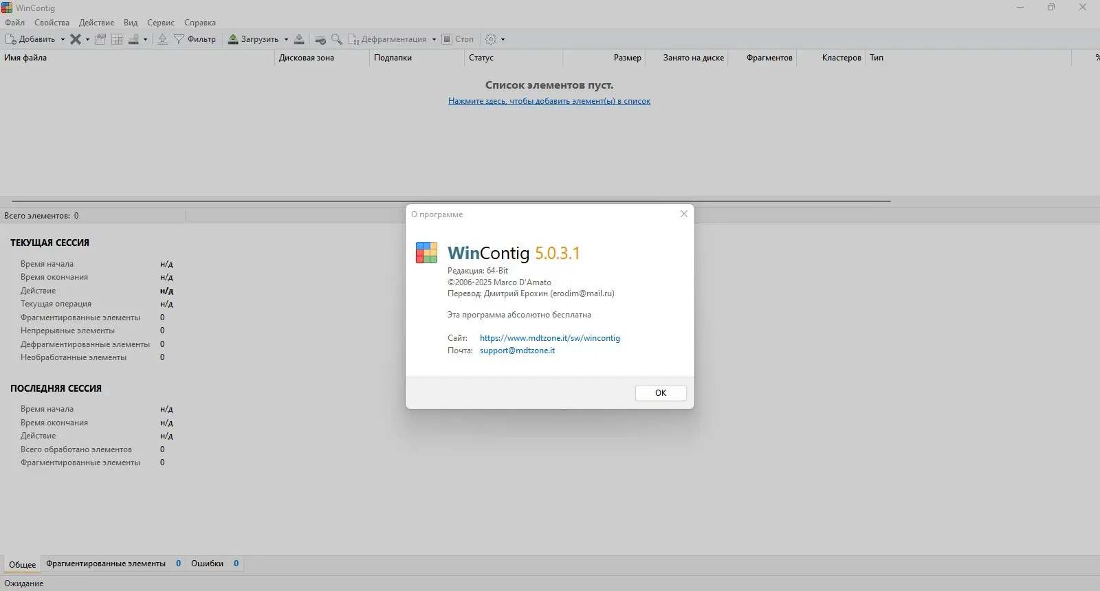 - Запустить WinContig и начать работу без процедуры инсталляции.
