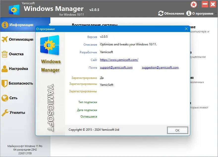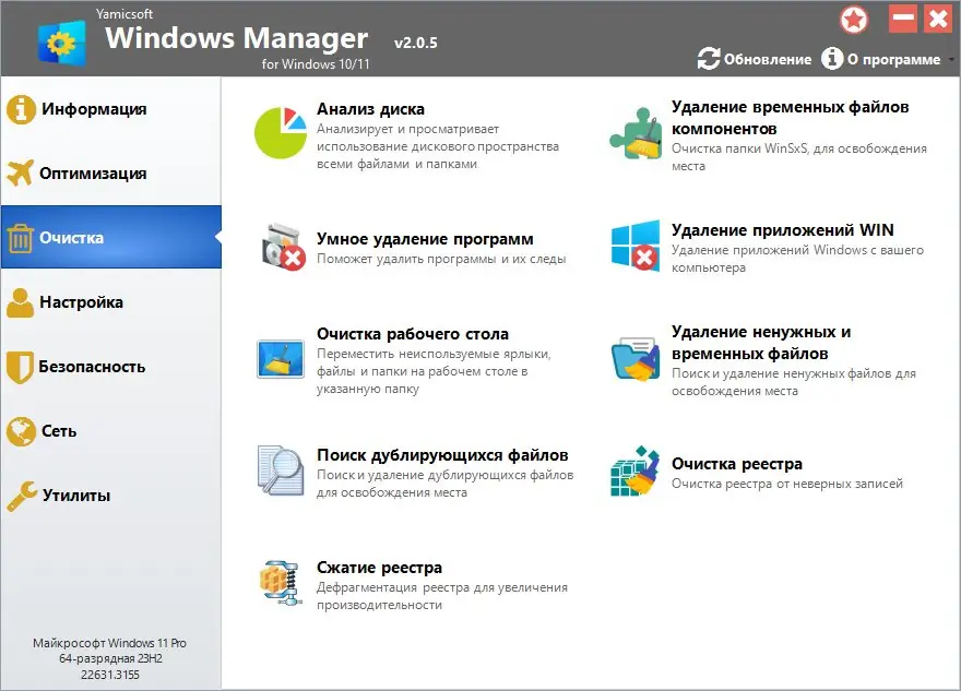 Windows Manager — универсальный комплекс для пользователей Windows 10 и 11, разработанный для ускорения работы системы, устранения ошибок, повышения безопасности и персонализации операционной среды. В рамках одной программы доступны инструменты для диагностики, оптимизации, очистки дисков, настройки внешнего вида и управления сетевыми соединениями, что делает её незаменимым помощником в ежедневном использовании компьютера. Утилита поддерживает как 32-, так и 64-битные версии и подходит для различных сценариев использования, от домашней установки до профессиональной настройки.