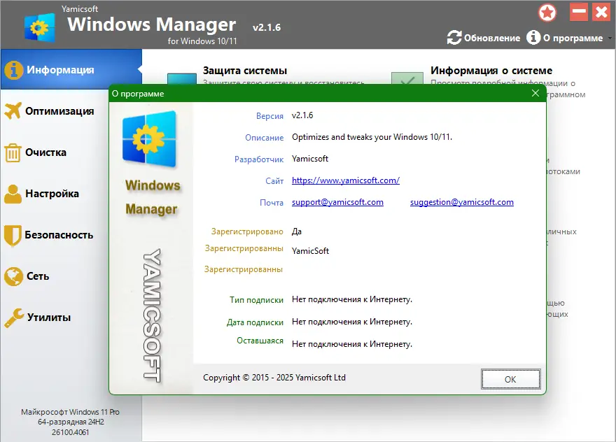 Комплексное решение для оптимизации, настройки, ремонта и очистки Windows 10/11. Windows Manager — это универсальная утилита, включающая более сорока полезных инструментов для повышения производительности и безопасности системы.