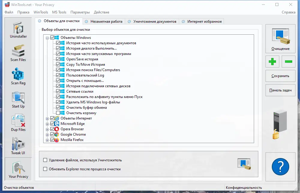 WinTools.net – это универсальный набор инструментов для оптимизации и обслуживания операционной системы Windows. Он включает компоненты для полного удаления нежелательных программ и «мертвых» ссылок реестра, контроля процессов, настройки интерфейса и интернет-соединений, а также утилиты для безопасного хранения конфиденциальной информации. Эта программа предназначена для повышения производительности системы и повышения её безопасности.