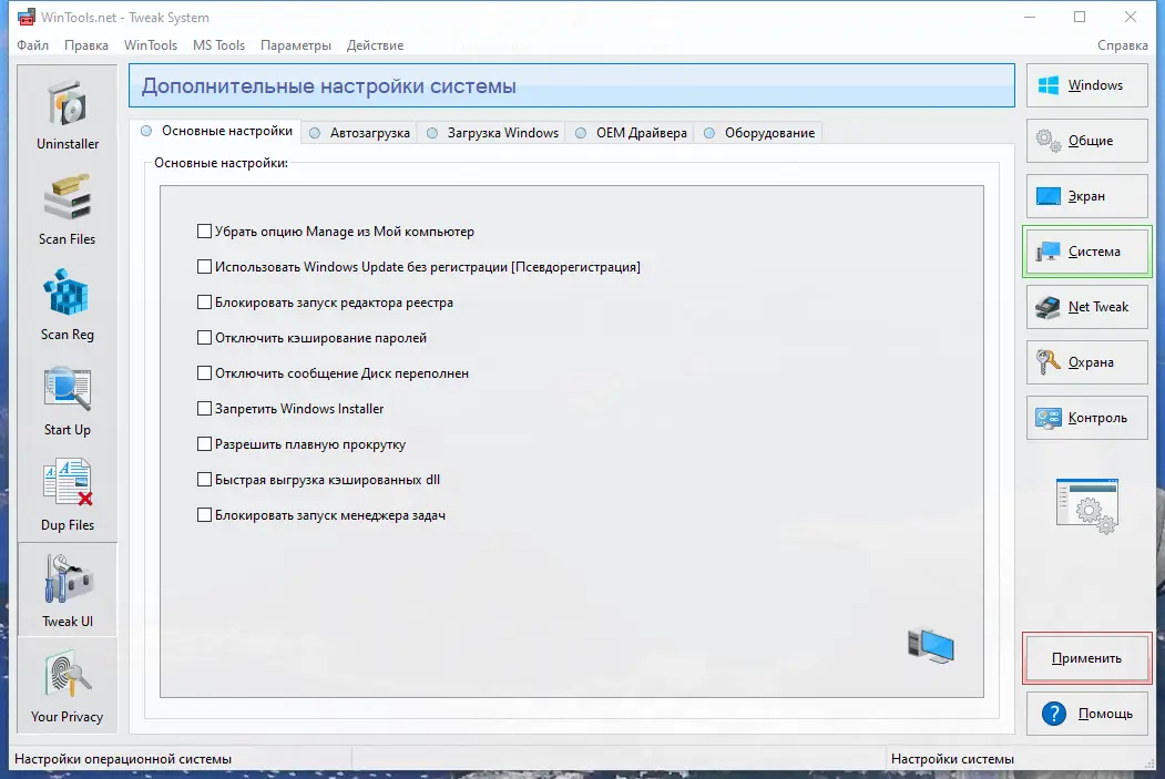 Основное преимущество — богатый функционал для повышения эффективности работы Windows и возможность тонкой настройки системы. Обеспечивает очистку системы от мусора, ускоряет загрузку и работу программ, а также защищает конфиденциальные данные.