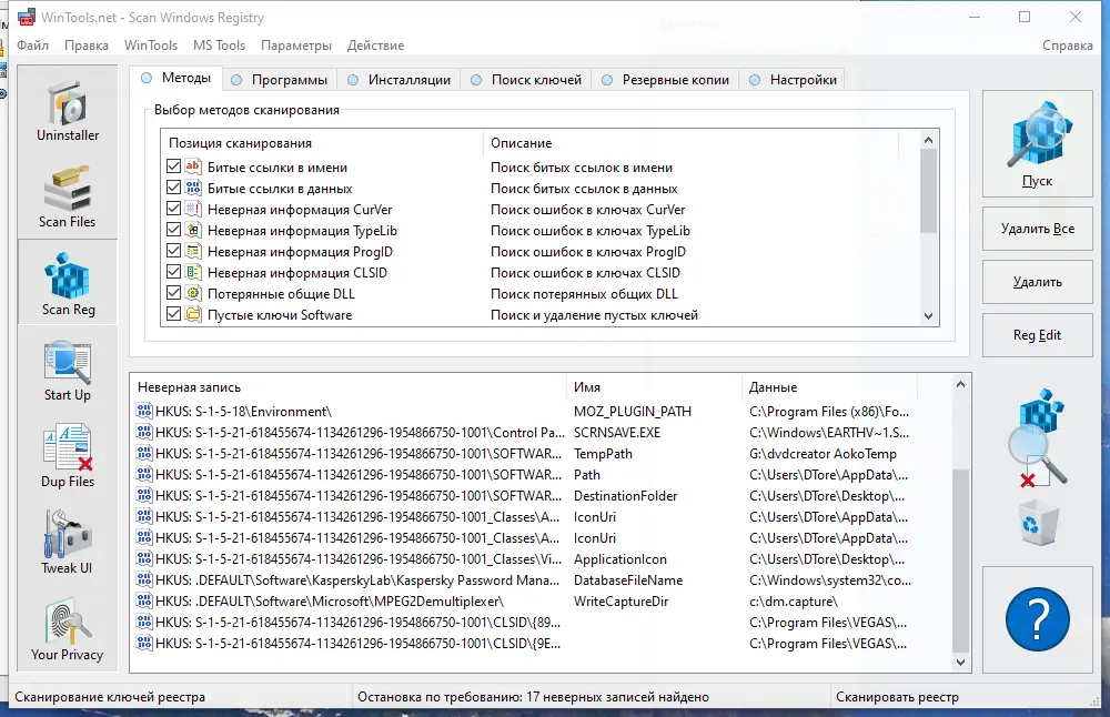 Для эффективной очистки системы от временных файлов используется инструмент «Scan Files», который помогает избавиться от ненужных данных, тормозящих работу ПК. «Scan Registry» обеспечивает периодическую очистку реестра, исправляя ошибочные записи, что способствует повышению скорости доступа к системным ресурсам.