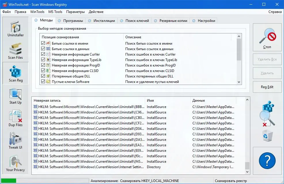 - Обнаружение и исправление неактуальных записей в реестре с помощью «Scan Registry»