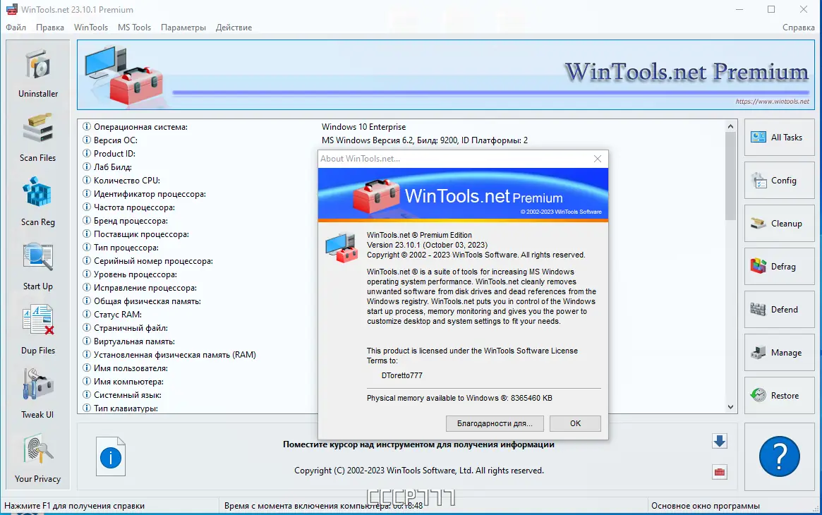 WinTools.net – это мощный набор инструментов для оптимизации и управления операционной системой Windows, предназначенный для повышения ее производительности и надежности. В состав программы входят компоненты для полного удаления нежелательных программ, очистки «мёртвых» ссылок в реестре, а также для контроля системных процессов, настройки интерфейса и интернет-соединений. Помимо этого, утилиты позволяют надежно хранить конфиденциальную информацию, обеспечивая безопасность данных пользователя.