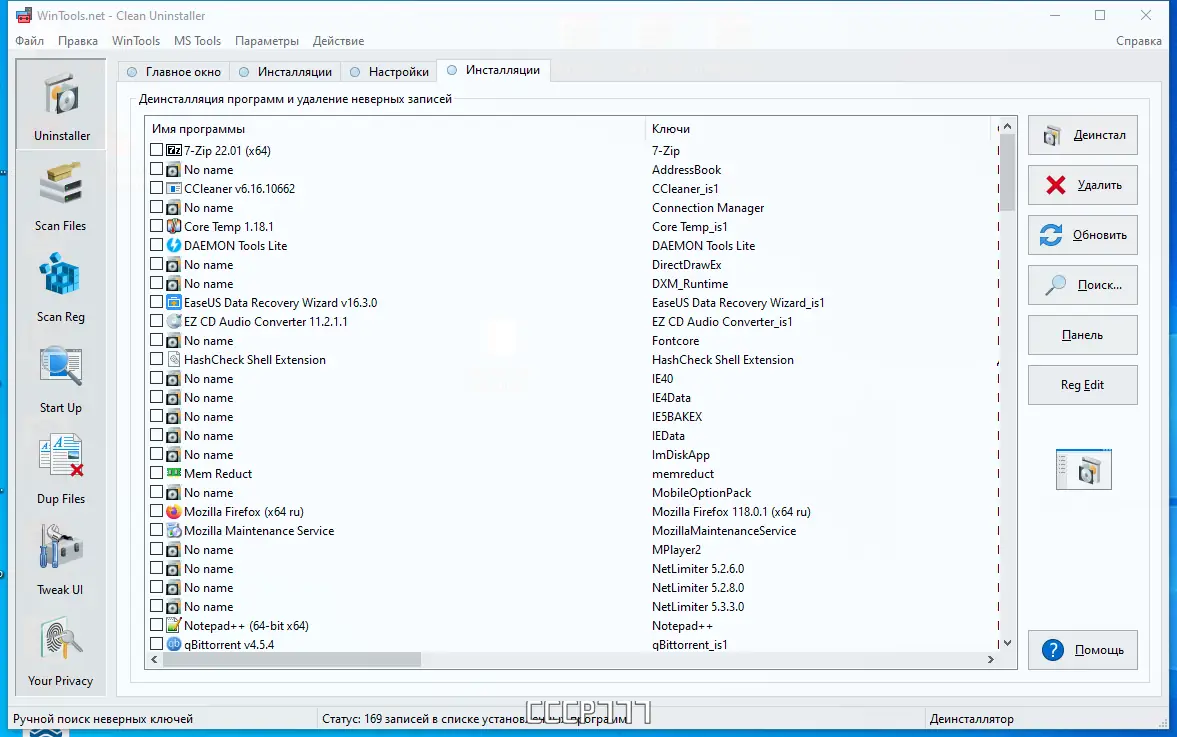 - Полное удаление программ и очистка остатков после деинсталляции с помощью компонента «Clean Uninstaller».