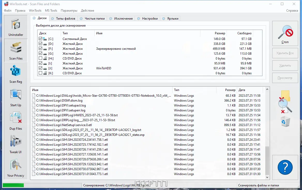- Очистка временных и неиспользуемых файлов при помощи “Scan Files” для повышения скорости работы системы.