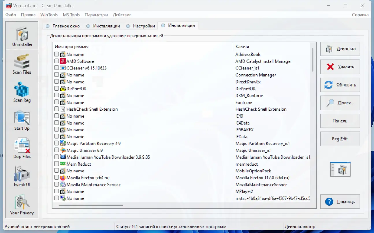 - Полное удаление нежелательных программ с очисткой остатков в реестре и файлах.
